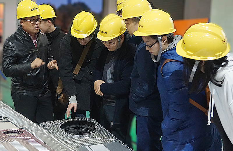 專家團(tuán)來到艾克森的生產(chǎn)車間,大型換熱設(shè)備在一如既往的車間忙碌生產(chǎn),并不斷的送往全國(guó)各地的客戶現(xiàn)場(chǎng),除了參觀生產(chǎn)設(shè)備和工藝流程,艾克森技術(shù)人員在參觀過程中全程和專家們共同討論交流,在優(yōu)化生產(chǎn)工藝和提高產(chǎn)品的品質(zhì)方面得到了專家團(tuán)的很多建議,艾克森的智能化生產(chǎn)線和先進(jìn)的制作工藝贏得專家們的一致認(rèn)可,電泳和測(cè)試平臺(tái)等設(shè)備的投入是成為專業(yè)換熱設(shè)備生產(chǎn)商的必要條件。