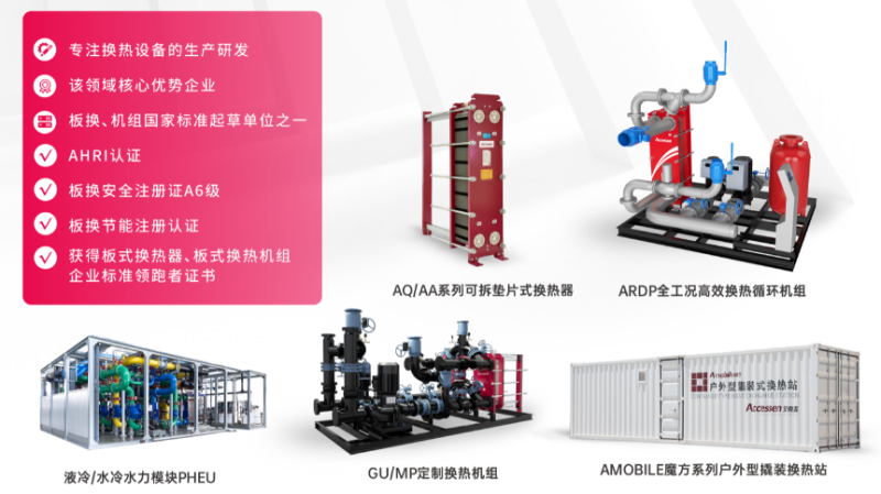 以板式換熱和系統(tǒng)集成為兩大核心技術(shù),艾克森按AS標(biāo)準(zhǔn)生產(chǎn)包括板式換熱器、板式換熱機(jī)組全焊板殼式換熱器、全焊板框式換熱器、全焊空氣換熱器、工藝水冷卻系統(tǒng)、余熱回收系統(tǒng)魔方箱式換熱站、預(yù)裝式集成冷站等在內(nèi)的全系列換熱設(shè)備,同時(shí)也提供符合ASME、CE、AHRI、API、DNV、GL、LR、ABS、BV、NK、KR、CCS、RINA、RS、CCC、GB等國(guó)際規(guī)范和標(biāo)準(zhǔn)的產(chǎn)品。