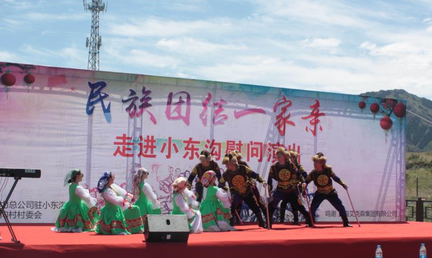 七月的南山陽光明媚,水西溝鎮(zhèn)小東溝村新建的文化廣場一大早已經(jīng)熱鬧非凡,村民不約而同的早早的來到這里忙碌起來了,幫助駐村工作隊和村委做起了灑水、擺凳子、音響設備等準備工作。由“訪惠聚”工作隊和艾克森聯(lián)合邀請的專業(yè)文化團隊,他們帶著精心編排的文藝節(jié)目和小東溝村各族村民,以“民族團結一家親”為主題的聯(lián)歡活動在這里舉行。全村民眾和60多對“結對親戚”歡聚一堂,唱歌、跳舞、雜技、說唱各種表演形式講述著民族團結的親情。