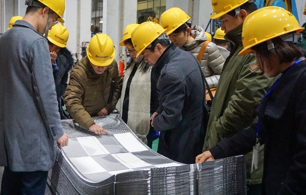 艾克森技術(shù)人員向?qū)<覉F(tuán)詳細(xì)介紹了板式換熱器、焊接式換熱器和板式換熱機(jī)組等產(chǎn)品,并與專家們分享了艾克森產(chǎn)品在醫(yī)藥食品行業(yè)的成功應(yīng)用案例和技術(shù)特點(diǎn)。帶領(lǐng)專家團(tuán)走進(jìn)謝春路工廠和太倉(cāng)工廠的生產(chǎn)一線,觀看了艾克森的生產(chǎn)加工設(shè)備,了解板式換熱器整個(gè)生產(chǎn)工藝的流程。公司引入的先進(jìn)自動(dòng)化生產(chǎn)設(shè)備,包括全球先進(jìn)的電泳涂裝生產(chǎn)線和自動(dòng)化焊接機(jī)器人、換熱機(jī)組全性能測(cè)試平臺(tái)、E-cloud智慧能源系統(tǒng)等設(shè)備,引起了專家們極大的興趣。就艾克森核心的板式換熱技術(shù)向?qū)<覉F(tuán)介紹了板片的獨(dú)特設(shè)計(jì),可以根據(jù)不同的工況設(shè)計(jì)不同的形狀和深度,以達(dá)到最佳換熱效果。機(jī)器人切割和焊接技術(shù),更大程度保證管件尺寸精確,焊接質(zhì)量更穩(wěn)定。電泳涂裝生產(chǎn)線可以延長(zhǎng)管道壽命,耐腐蝕性更高,耐高溫,降低管道阻力的特點(diǎn)等,得到了專家們的一致肯定。